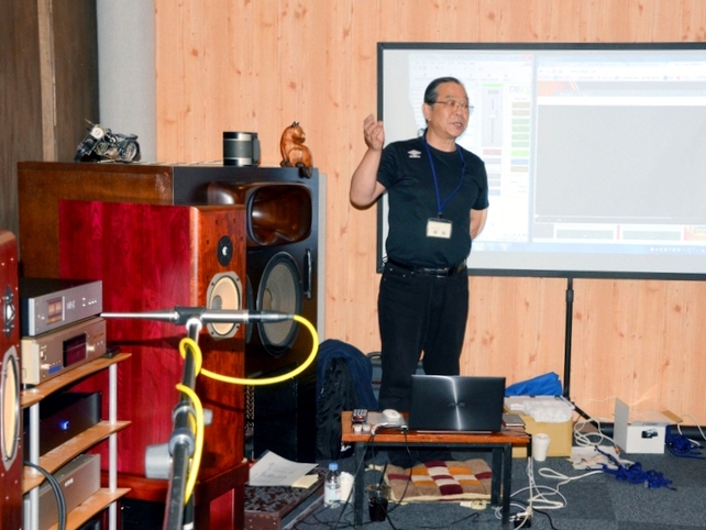 講師は輸入販売するKurizz-Labo(クリズラボ)代表の栗原信義氏。栗原氏は、NHKのミキシングエンジニアとして30年、趣味のオーディオ暦40年という経歴を持つ音のプロフェッショナル。紅白など音響の指揮を執ってこられた方で、トークも楽しみのひとつ。現在、軽井沢にKurizz-Laboを構え、DEQXシステムの魅力をコンシューマーオーディオに広めるべく活動中である