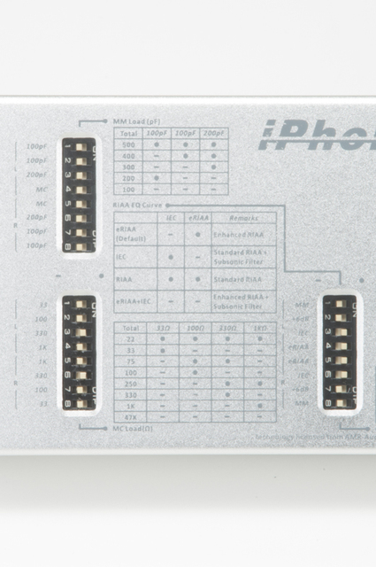 iPhonoの最も大きな特徴でもある多彩な切り換えスイッチ。カートリッジゲイン、インピーダンスは8通りに切り換えることが可能だ