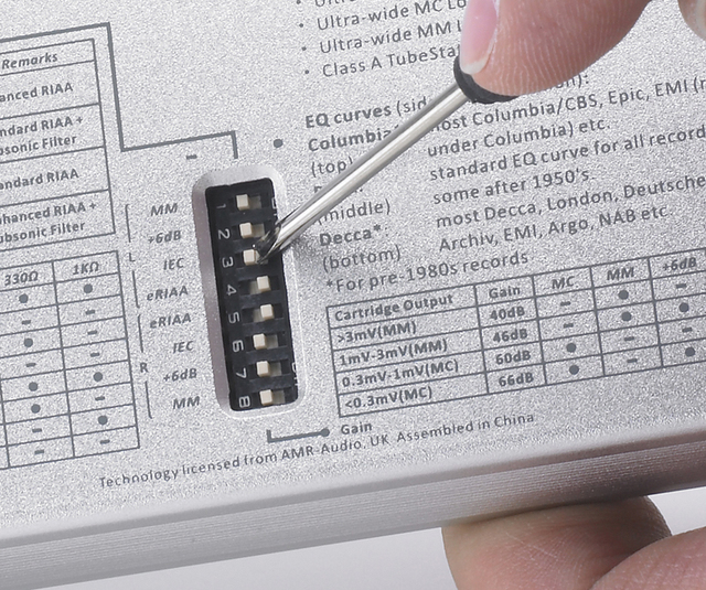 ディップスイッチを切り換えるためのマイナスドライバーも付属する
