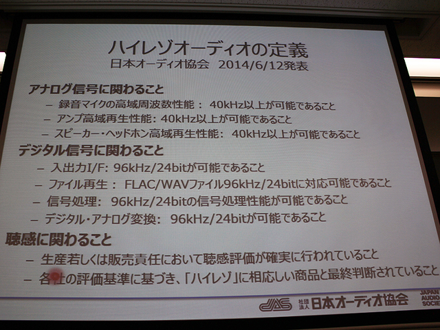 日本オーディオ協会によるハイレゾ対応機器(民生用)の定義