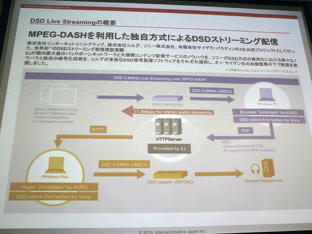 2015年、MPEG-DASHを使用した独自方式によるDSDストリーミング配信を実施