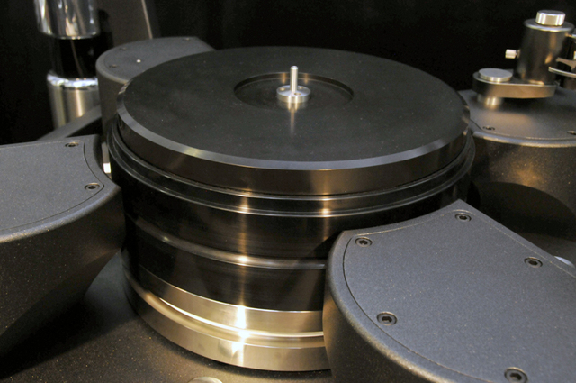 プラッターの質量だけでなんと58kg! この重量がなんとエアーでフローティングされたうえで回転する