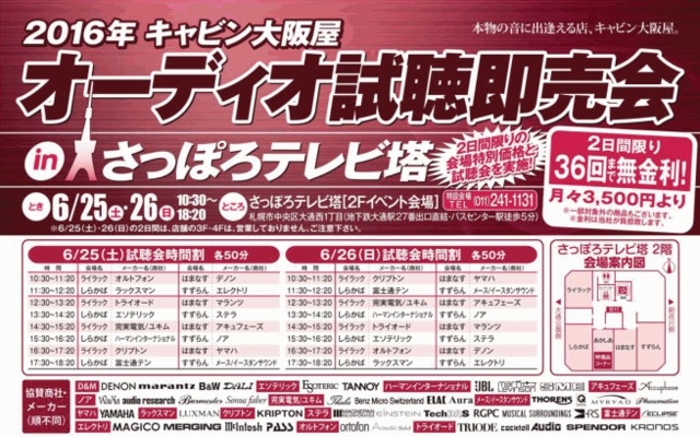 CAVIN大阪屋、「オーディオ試聴即売会 in さっぽろテレビ塔」を6月25・26日に開催