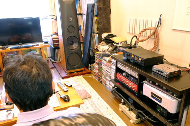 鈴木氏の自宅での試聴の様子。実は写真は鈴木氏が普段使用しているプリアンプの前段にPro iCANを接続した際のもの