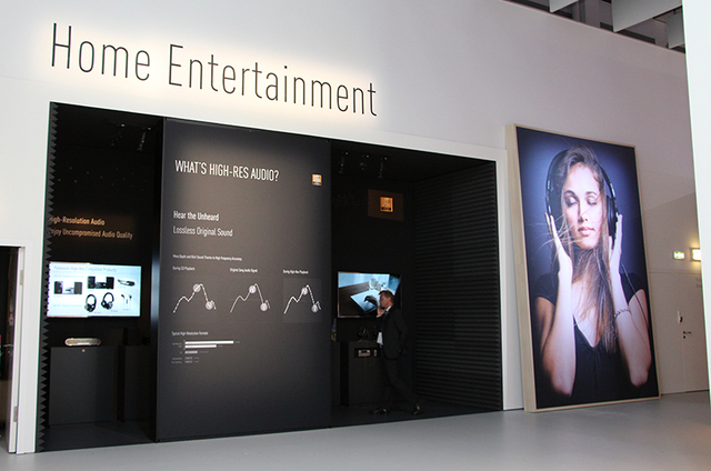 ハイレゾ対応コンポやヘッドホンは専用コーナーを設け、じっくりと試聴できるようになっていた