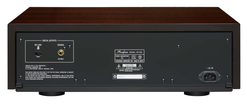 DP-950の背面。デジタル出力はRCA同軸とHS-LINKを装備する。RCA同軸はCDのみの対応。SACDに対応するHS-LINKはVer.2にアップグレードされている