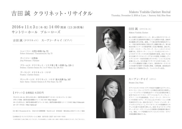 クラリネット奏者、吉田誠のリサイタルが11月3日に開催 - ライブレコーディングも予定