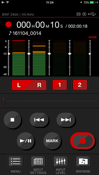 「TASCAM DR CONTROL」のスマホ画面イメージ