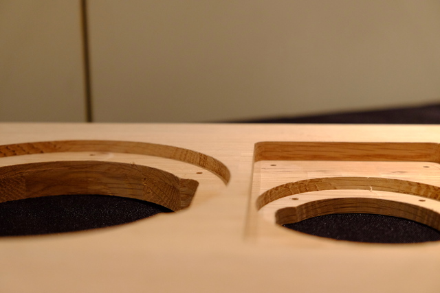 S-PM50のバッフル板。ウーファーユニットの設置部(左)とワイドレンジドライバーの設置部(右)を見ると、ワイドレンジドライバーが奥に設置されることが分かる
