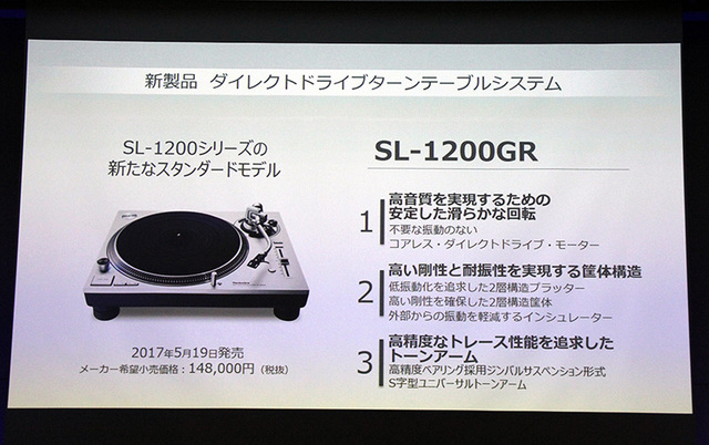 テクニクスの新アナログプレーヤー「SL-1200GR」は148,000円、5月19日発売