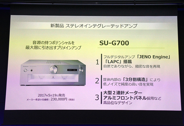 テクニクスから中級プリメインアンプ「SU-G700」登場。23万円