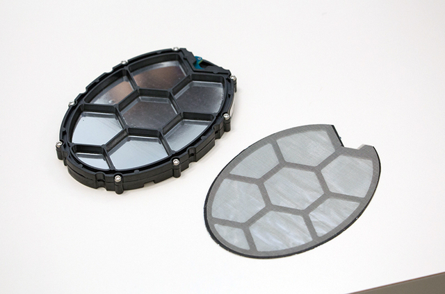 平面振動板は蜂の巣形状のグリッドで分割。共振周波数を分散させるとともに高域の伸びを向上させることもできるという