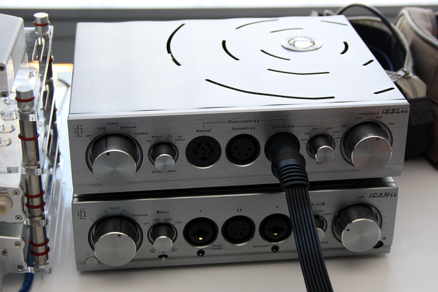 静電型ヘッドフォンへの対応を始めユニークな機能を満載したエナジャイザーモジュール「Pro iESL」(写真上)