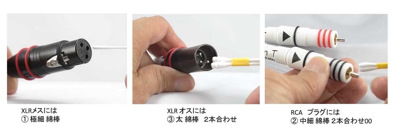 Polish(接点磨き)とPolymer(接点拡張剤)における綿棒の使用例