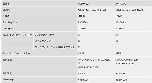 AK4493とAK4490の比較