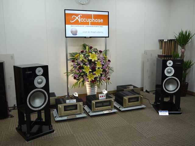 アキュフェーズのモノフォニックスパワーアンプA-250、プリアンプC-3850、パワー・アンプP-7300のシステム。スピーカーハヤマハのNS-5000