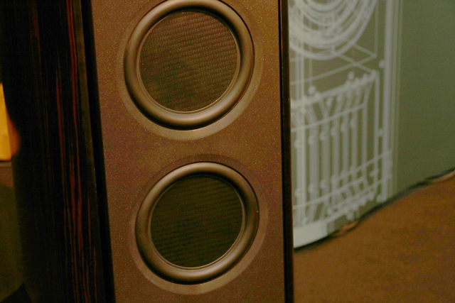 AMT採用のエンクロージャーの上下に配置されたウーファーは、3層のカーボンファイバープレートから成るΦ165mmウーファーを採用
