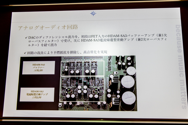 同社のお家芸といえるHDAMアンプモジュールを用いたディスクリート構成のアナログオーディオ回路を搭載
