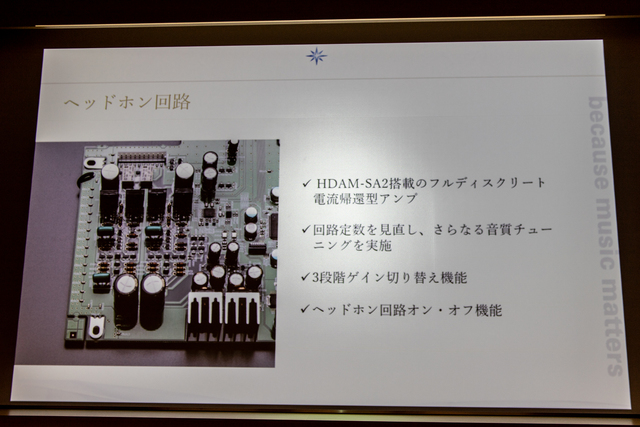 マランツが歴代プレーヤーで力を入れてきたヘッドホン回路。本機はHDAM-SA2搭載のフルディスクリート電流帰還型アンプを採用