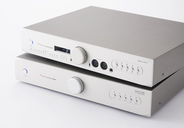 NmodeのUSB DAC、X-DP10(上、¥330,000/税別)と、プリメインアンプX-PM7 10TH ANNIVERSARY(下、¥300,000/税別)。10周年記念モデルは50台限定