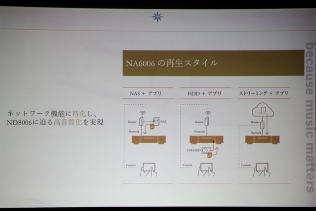 NA6006はNASやUSB接続したハードディスク内の音源、音楽ストリーミングなどが再生可能
