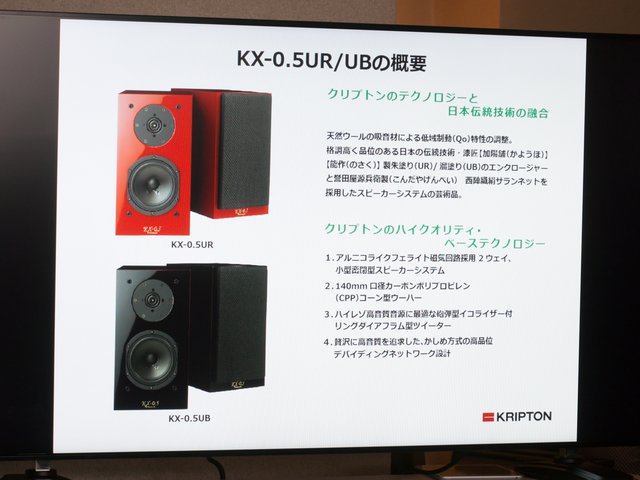 クリプトン、漆塗りのブックシェルフスピーカー「KX-0.5UR/UB」。西陣織のサランネット採用