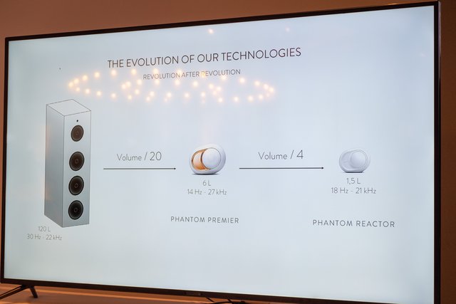 同程度の性能とする120Lのスピーカーと比較した場合、PHANTOMでは1/20の容積、そしてREACTORではPHANTOMからさらに1/4の容積となる