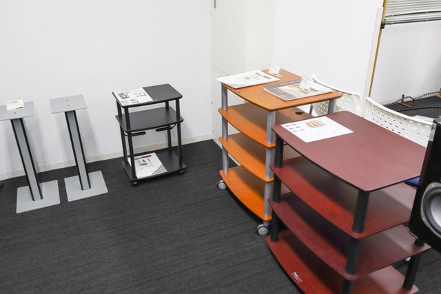 SOUNDMAGICのオーディオラックも多数並ぶ
