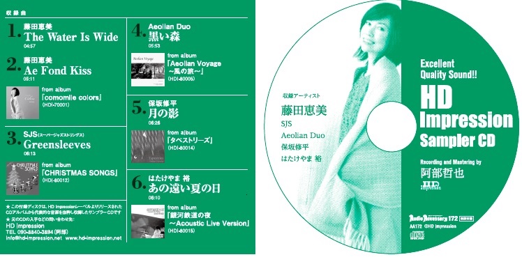 今号の特別付録はHD impressionのアーティストを収録した全6曲のCD。藤田恵美は「The Water Is Wide」と「Ae Fond Kiss」の2曲を収録