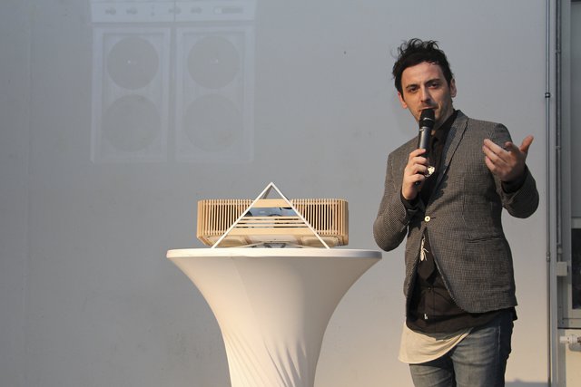 デザインコンセプトを説明するJulian Haziza氏。日本を代表する建築家、安藤忠雄のデザインから強くインスピレーションを受けたと話す