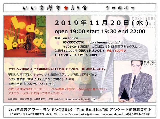 名盤レコードを通し聴きする“爆音アワー”「いい音爆音☆AA会」が12/18開催