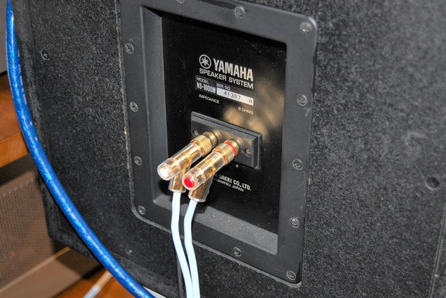 NS-1000Mのウイークポイントを解消。スピーカー端子はバナナプラグやYラグにも対応する削り出しの金メッキのものに交換