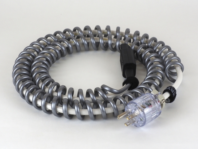 ケーブルに巻き付けるインシュレーター「Helca 1」。電源ケーブルでの使用例