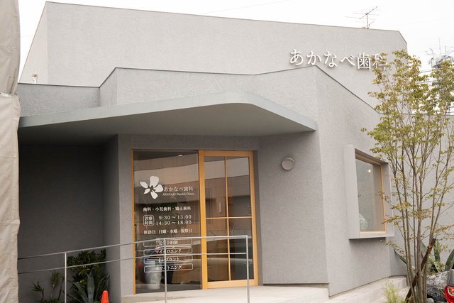あかなべ歯科の外観。バリアフリーにも配慮し、地域密着と最先端医療を両立させる歯科医院を目指している
