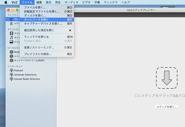 Mac用フリーソフト「VLC」から「ネットワークを開く」