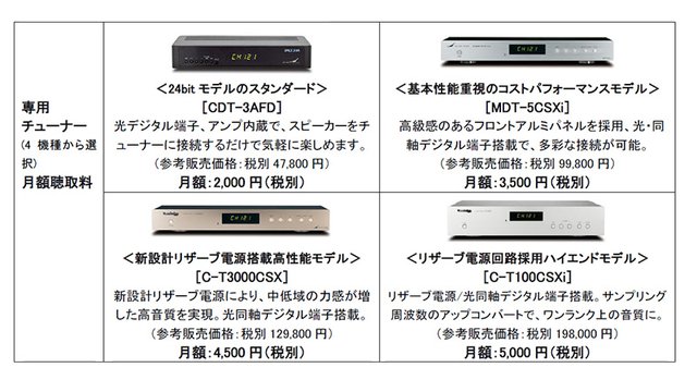 ミュージックバード、初期費用0円プランをリニューアル。チューナーを4種類から選択可能に