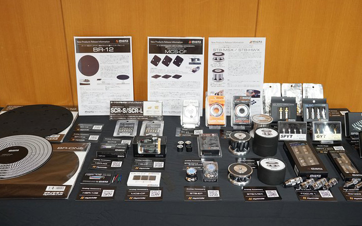 レコード用アクセサリー類も多数展示されている