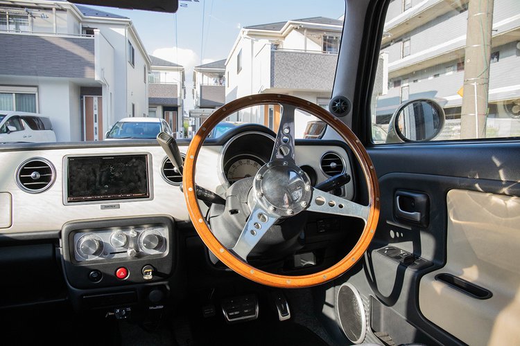 ハンドルやツマミ等もカスタマイズして世界に一台だけのラパンに!