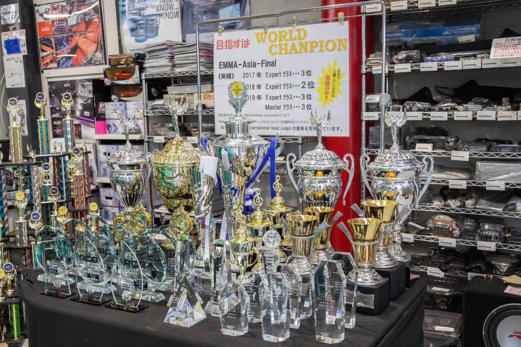 店内には過去のコンテストで獲得したトロフィーがズラリ