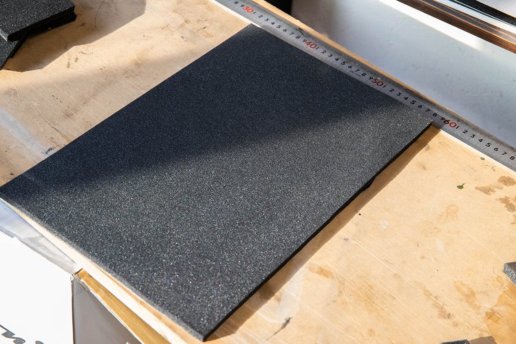 超静音化施工に使用する「イージーサイレンス for ELUS」。カッター等で適切なサイズに切り取って使用する