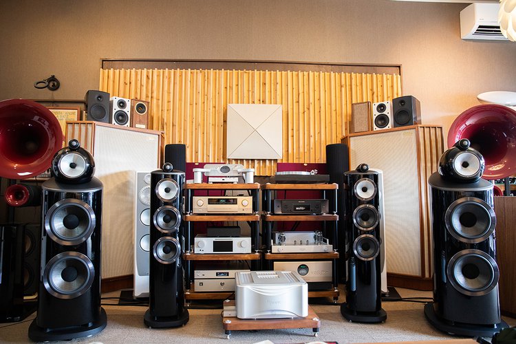 1Fにはホームオーディオの試聴スペースも設けられ、B&Wの「801 D4」を筆頭にアヴァンギャルド、パラダイムなどのハイエンドスピーカーが並ぶ