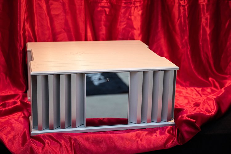 参考出品されたステレオパワーアンプ「218」。写真では分かりづらいが「216」より背も高いとのこと