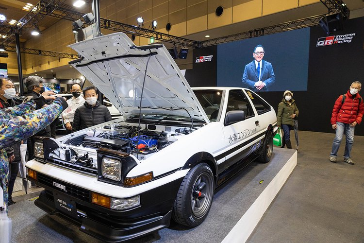 TOYOTAは実験段階の水素エンジンのクルマを展示