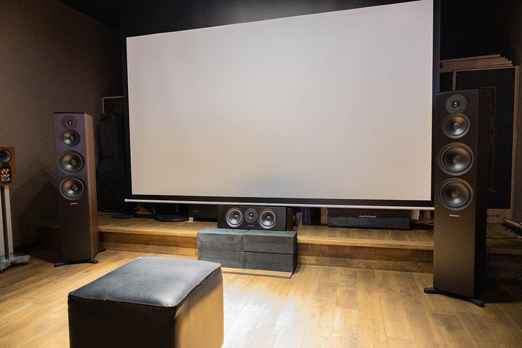サウンドナビプロではホームシアターの施工もお願いできる。自宅にはDYNAUDIOとMORELのスピーカーを活用したホームシアターも構築