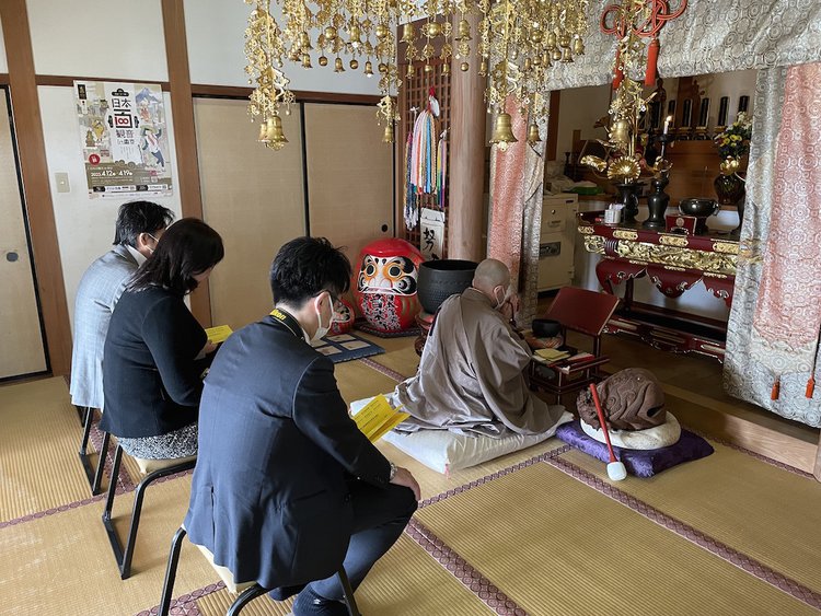 住職に供養をお願いする(株)ナガオカトレーディングの西武司氏