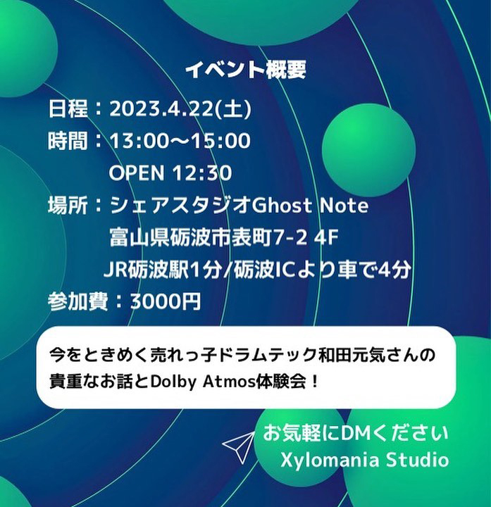 富山県砺波市にて、ドルビーアトモス体験会を4/22に開催。“髭男”エンジニアの古賀健一さん主催