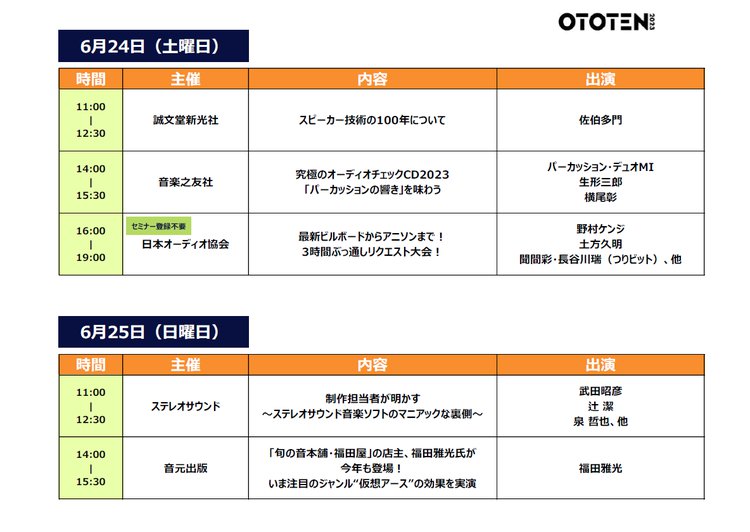CAVIN大阪屋「オーディオ&ホームシアター試聴即売会 2023」を6/24-25に開催。全25社が参加