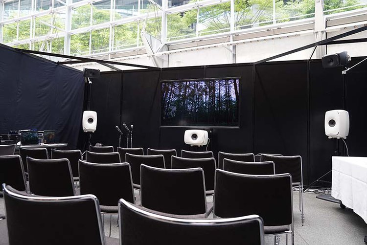 WOWOWブースではスピーカーやテレビ、ヘッドホンでのサラウンド体験が可能
