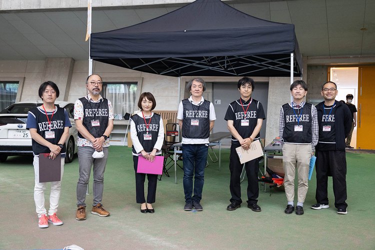 今回の審査員。左から土方久明氏、小原由夫氏、模擬審査に参加の飯田有沙氏、審査委員長の山之内 正氏、生方三郎氏、炭山アキラ氏、峯岸良行氏