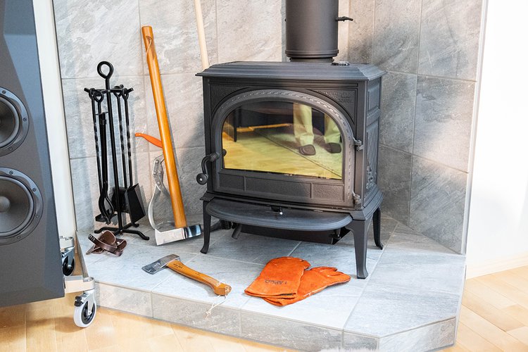 薪ストーブの火を眺めながら音楽を聴くのもまた至福のとき